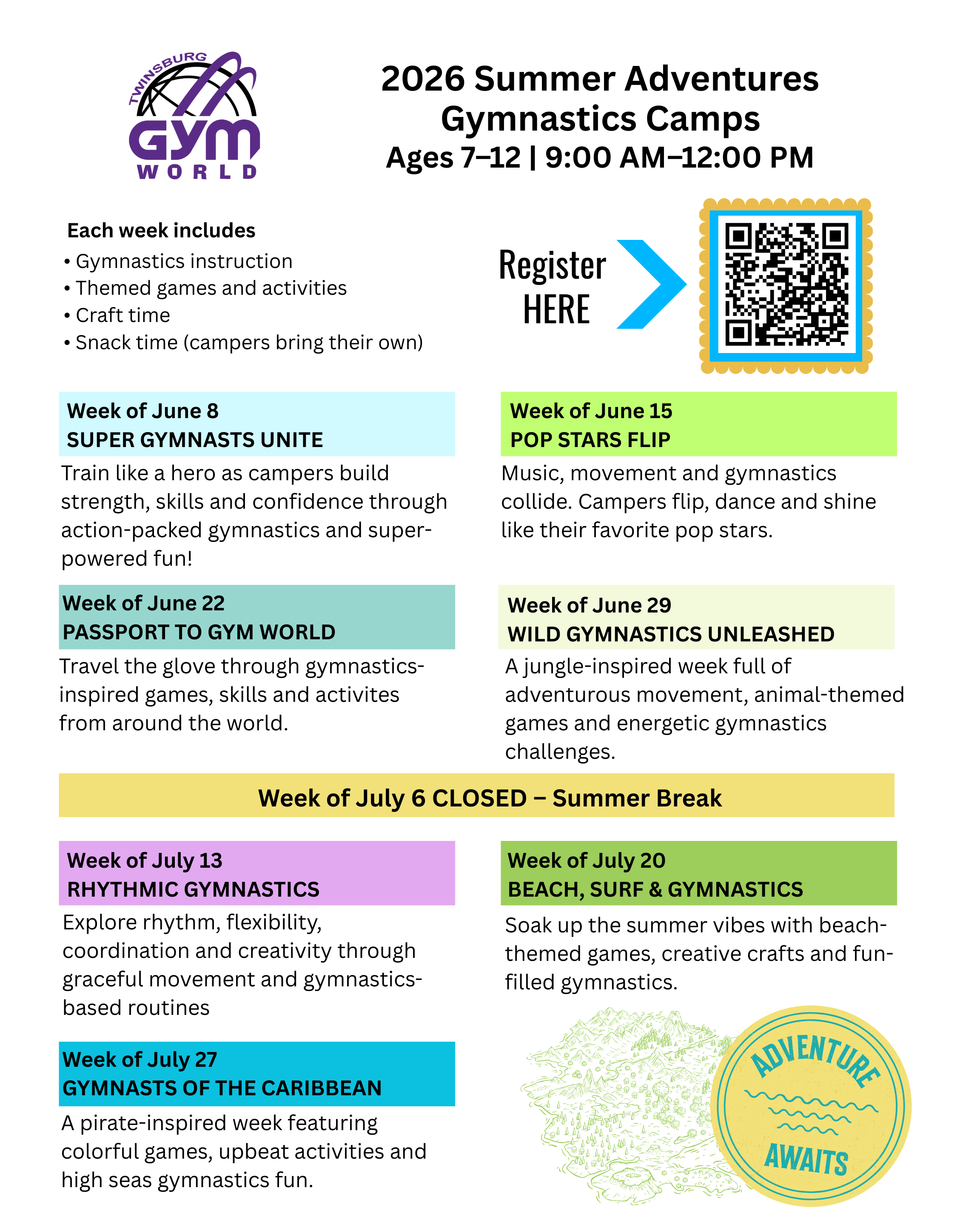Summer Adventures Gymnastics Camp - for ages 7-12